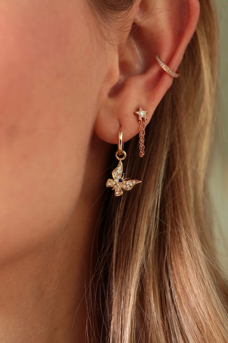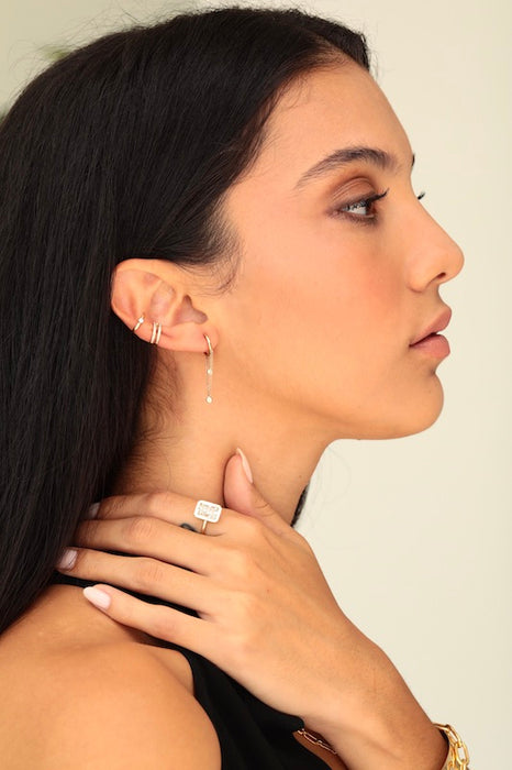 Model shown wearing the single row pave ear cuff, double row also available.